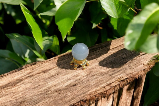 Aquamarijn blauwe bol met houdertje 1cm