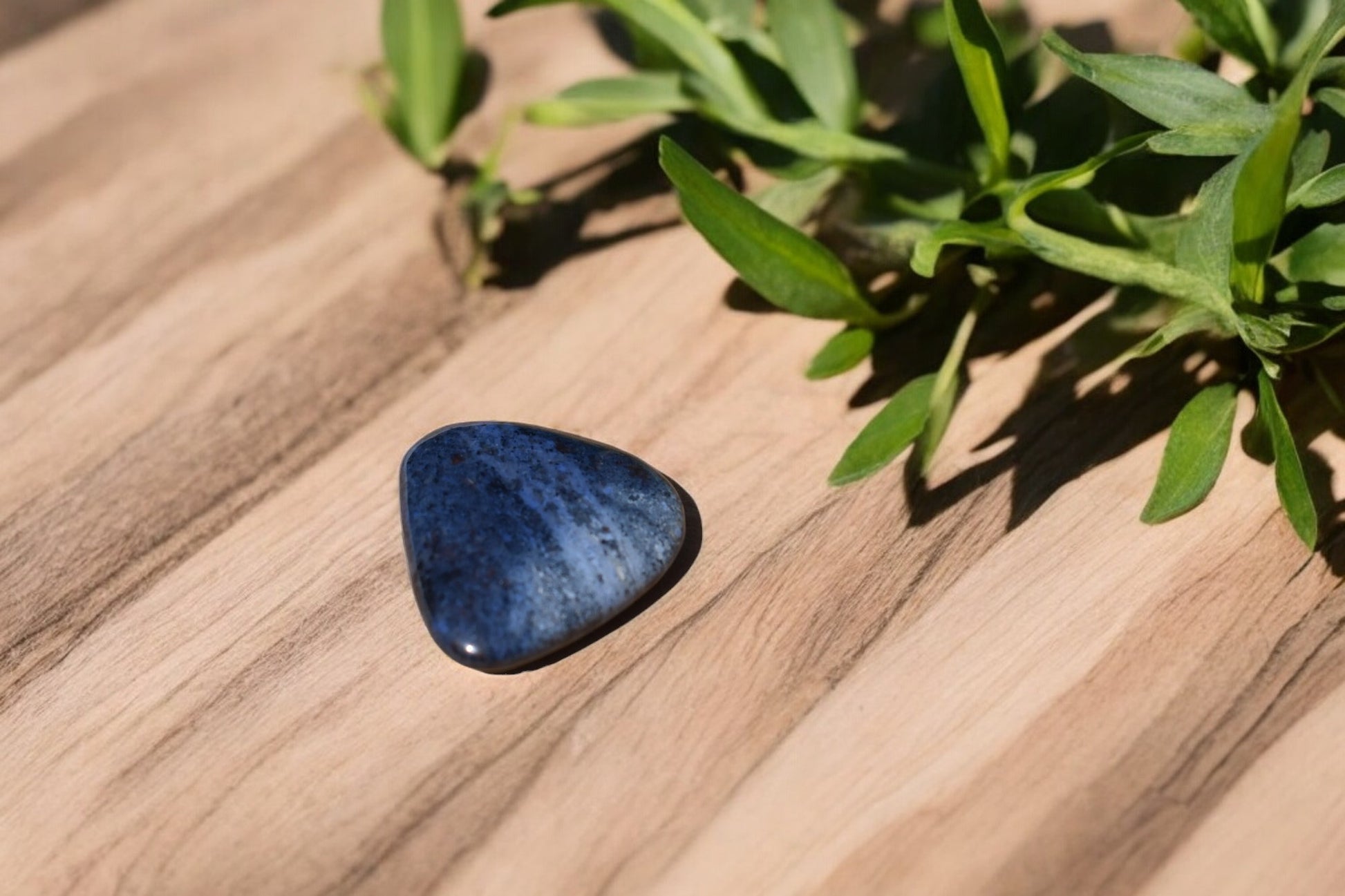 Een mooie schijfsteen van dumorteriet.