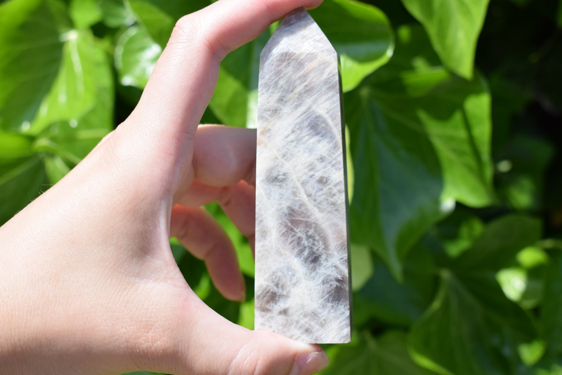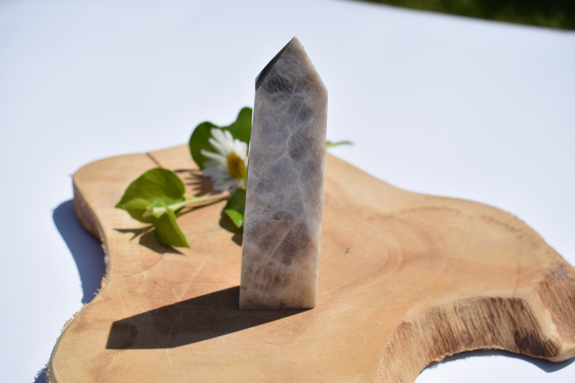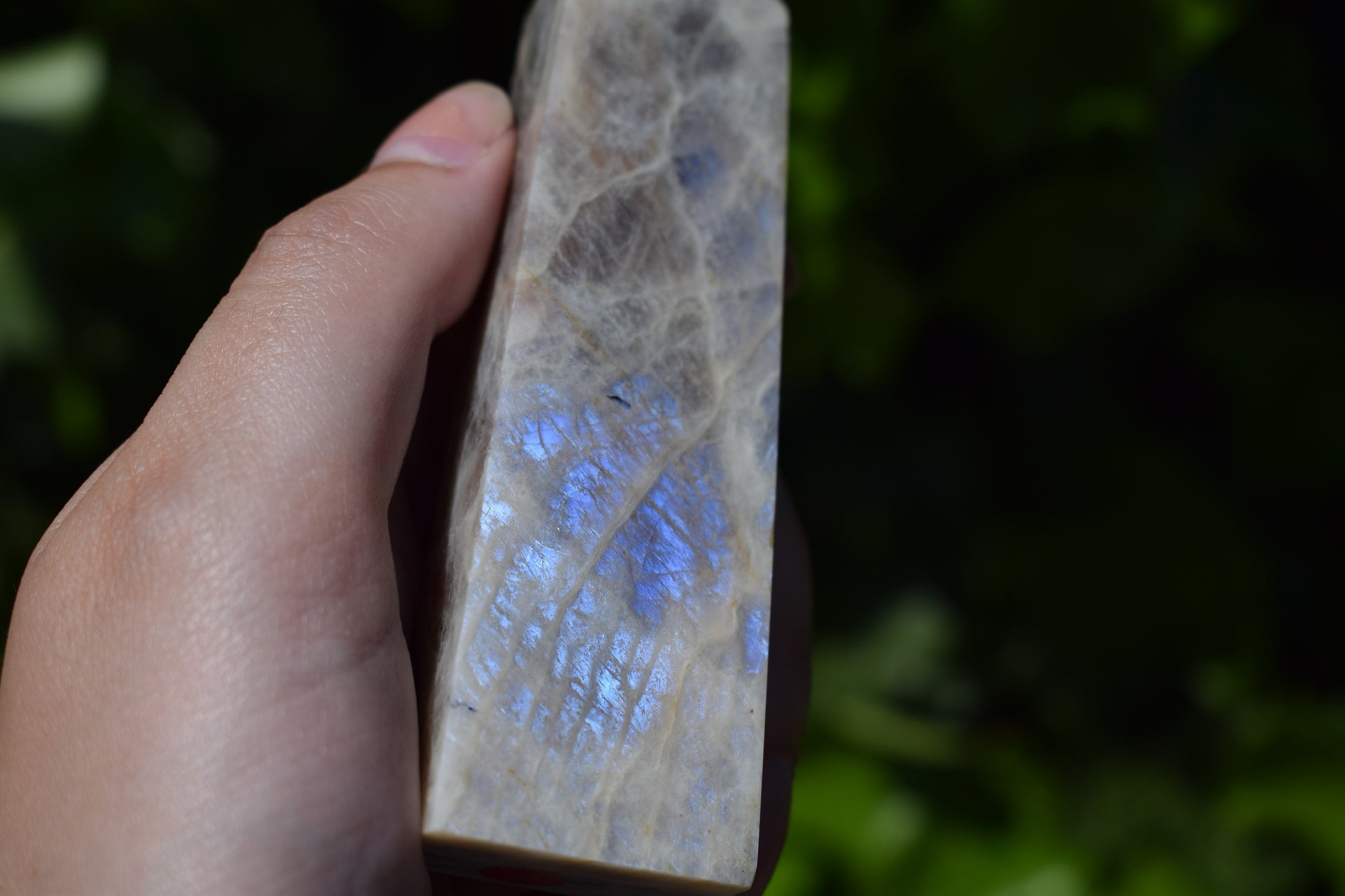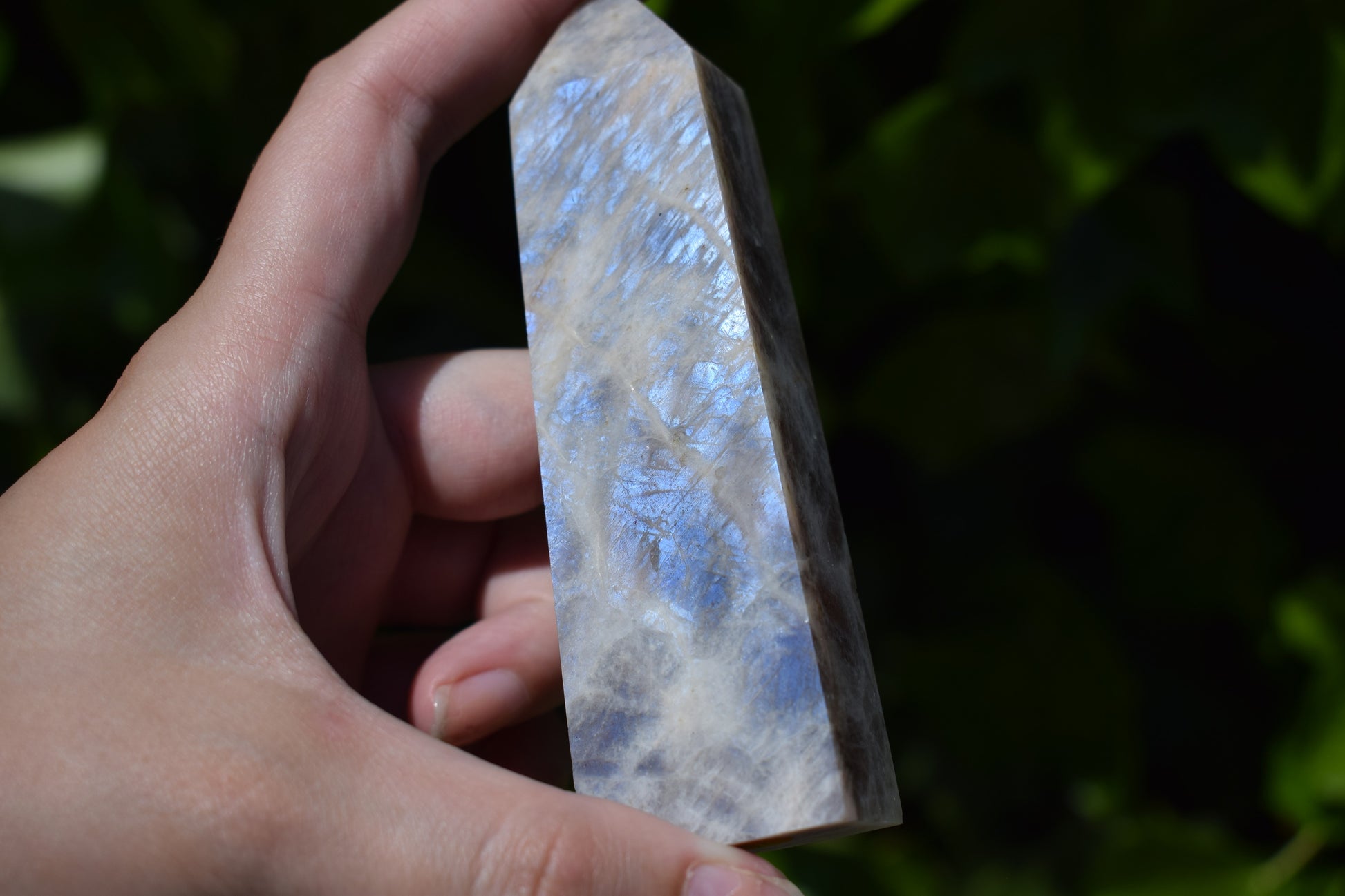 Enorm mooie maansteen toren, met een mooie blauwe flash van 130 gram!