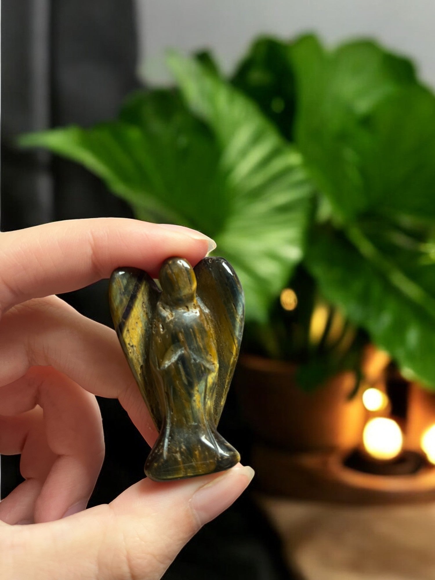 De tijgeroog engel bevordert zelfvertrouwen, moed en besluitvaardigheid. Het helpt bij het overwinnen van angst, het vergroten van mentale kracht en het bevorderen van positieve verandering.